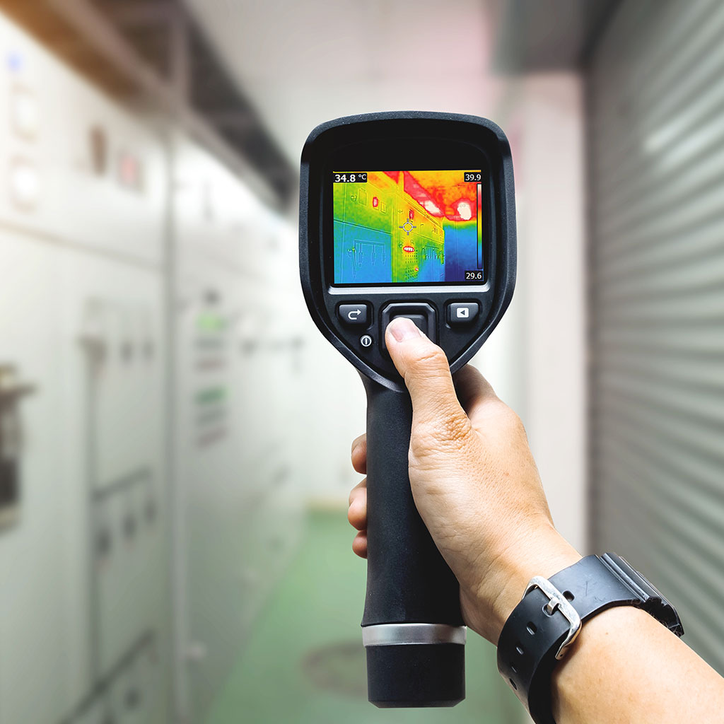 - Termografie: Termokamera odhalí přehřívání spojů, nerovnoměrné zatížení fází, špatné dotažení svorek, přechodové odpory nebo lokální tepelné ztráty. V budovách je termografie praktická pro rozvaděče, UPS, serverovny, napájecí trasy i některé části HVAC. Přínosem je prevence požárního rizika a výpadků z důvodu přehřátí – často bez odstávky.